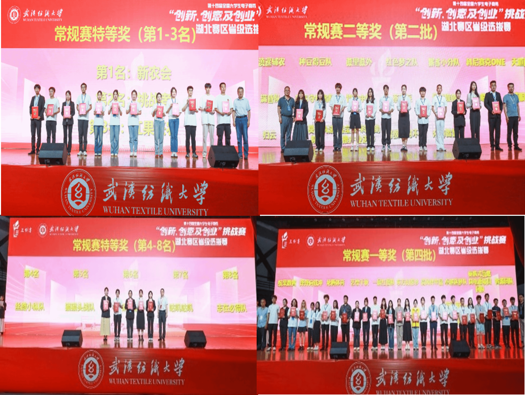 本届赛事常规赛一共分为16组,经过激烈角逐,16支特优团队凭借其扎实的专业功底、亮眼的实战成果和精彩的路演展示脱颖而出,斩获了本次三创赛湖北省选拔赛的特等奖。此外,大赛还评选出了常规赛一等奖80支团队、二等奖112支团队。