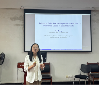 郑锐老师带来“基于社交网络的产品推广与网红选择策略研究”,聚焦社交电商平台,分析网红选择与产品推广策略,贴合当下数字经济热点,引发热烈讨论。