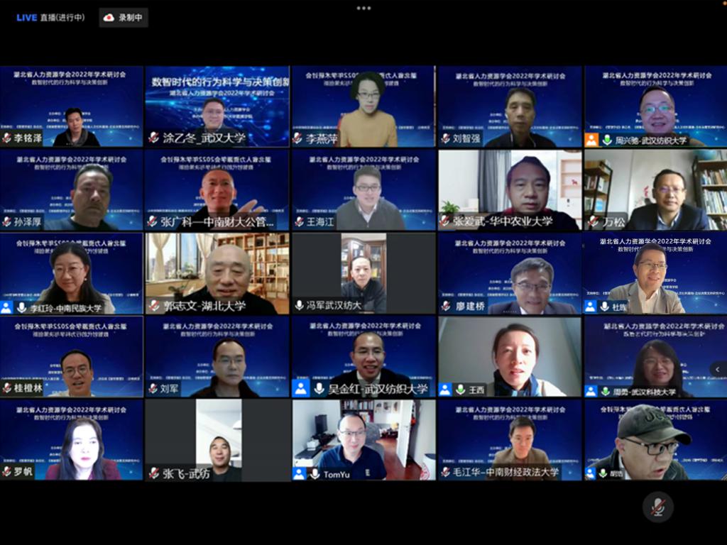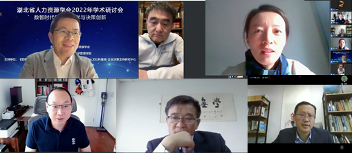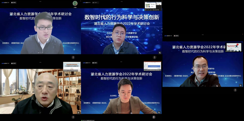 为了更好把握新形势带来的机遇,更好迎接新时代的新挑战,服务国家重大战略需求,汇集和展示行为科学等学科领域的最新研究成果,进一步促进我省人力资源管理领域的交流和学科发展。2022年11月13日,湖北省人力资源学会2022年年会在线上召开,本次会议的主题是“数智时代的行为科学与决策创新”,会议由湖北省人力资源学会主办,由350vip浦京集团官网承办。旨在为相关领域研究者、教育教学工作者、实践工作者提供交流平台,活跃科研教学思路和实际管理工作思路,拓展学术视野与多种形式的合作空间。本次会议邀请了省内人力资源领域的众多专家学者及企业嘉宾出席研讨,也邀请了省内各个兄弟院校相关领域的师生参与会议,会议当天腾讯会议参会人员256人次,直播链接观看人员267人次,共计540多人参与到这次年会活动中来。本次会议共收到高水平投稿60多篇,一定程度代表了湖北省人力资源领域较为先进的研究水平。会议开始由350vip浦京集团官网院长吴金红教授主持。