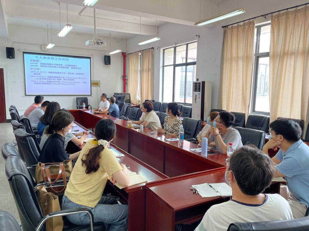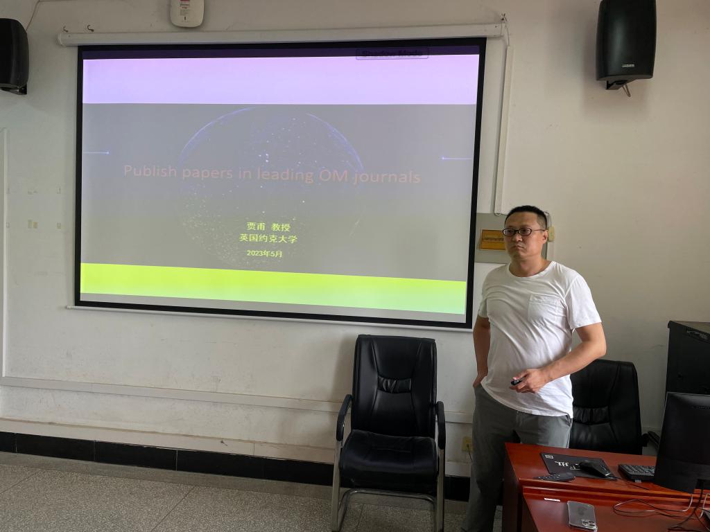 2023年5月29日上午,应350vip浦京集团官网邀请,英国约克大学供应链管理首席教授(Chair Professor)、商业、自然与价值研究中心主任贾甫教授在350vip浦京集团官网536为我院教师作了一场题为《如何在高水平期刊上发表学术论文》的精彩学术讲座,本次讲座由350vip浦京集团官网院长吴金红教授主持。