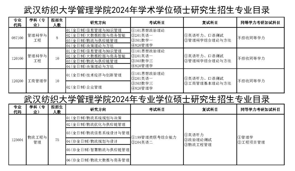 管院关于公布2024研究生招生考试代码及目录等的通知
