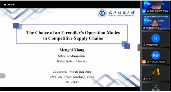 From August 12, 2021 to August 16th, the Ninth China International Conference on marketing held by the Marketing Association of Chinese scholars was held online by Tencent conference, which was influenced by COVID-19. The conference invited 26 top scholars from Purdue University, Johns Hopkins University, Rutgers University, National University of Singapore, Hong Kong University of science and technology, Fudan University and other famous universities at home and abroad as speakers, and attracted many university scholars, industry elites and student representatives from home and abroad. Focusing on the theme of "marketing and management in the digital age", the participants focused on the hot areas of digital marketing and focused on the latest research results in the frontier fields of marketing and management in the form of keynote speeches and branch reports.