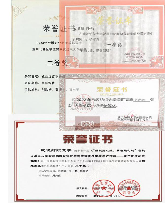 刘欣妍的本科生活充满色彩:担任班长、参与院校活动、斩获学科竞赛奖项等,她坦言“大三下学期前,我几乎没停下过脚步。”然而,随着考研目标的明确,她果断按下了课外活动的“暂停键”。“竞赛和实践让我成长,但读研需要更专注的沉淀。”谈及跨校考研的初衷,她表示:“中南财大的管理学科底蕴深厚,我想挑战更高平台”。