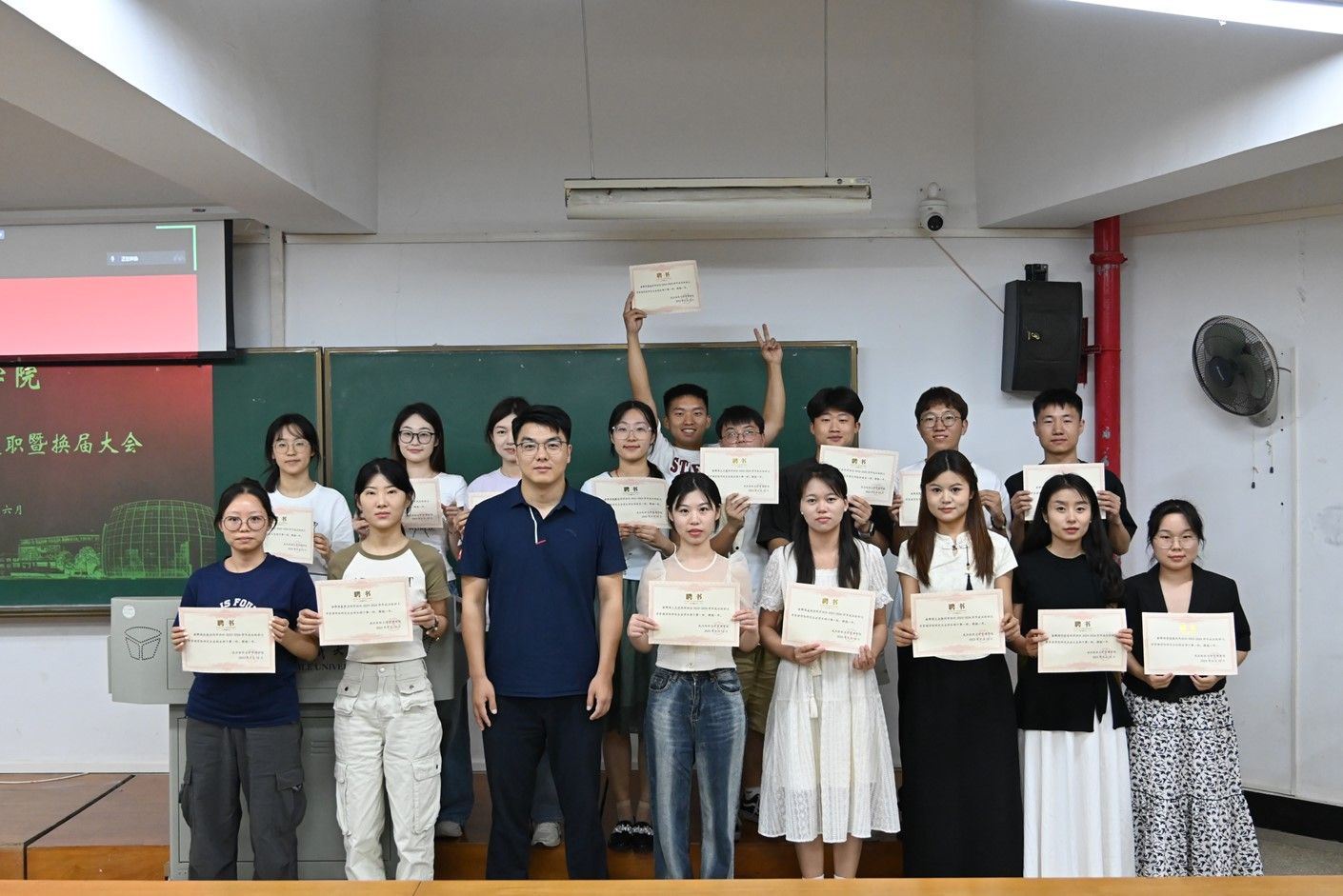 经过激烈的角逐,最终产生了新一届研究生会干部名单。井浩老师为主席、部长以及干事们颁发了聘书,并对他们表示祝贺和期望。