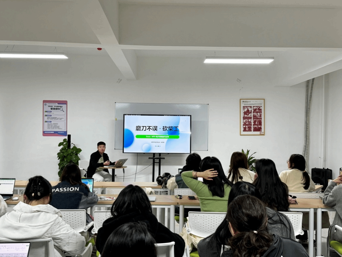 然后,文宣部的侯豪情带来了公众号发布的经验分享。他向大家展示了如何选择贴合主题的模板,将封面制作和海报制作的技巧倾囊相授。侯豪情的分享极大地提升了各位干事对公众号运营的认识,为日后工作的深入开展奠定了坚实基础。