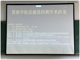学术交流在高校的人才培养、学院的建设、科研水平的提高以及可持续发展等方面发挥着其重要的作用。350vip浦京集团官网于4月3日在阳光校区举办了第五期“崇德”学术沙龙,本次学术沙龙分成两个会场同时进行,各有6位同学对自己的研究近况进行展示。学院特邀李静雯老师和谢霞老师参与主持此次论坛并发表点评。