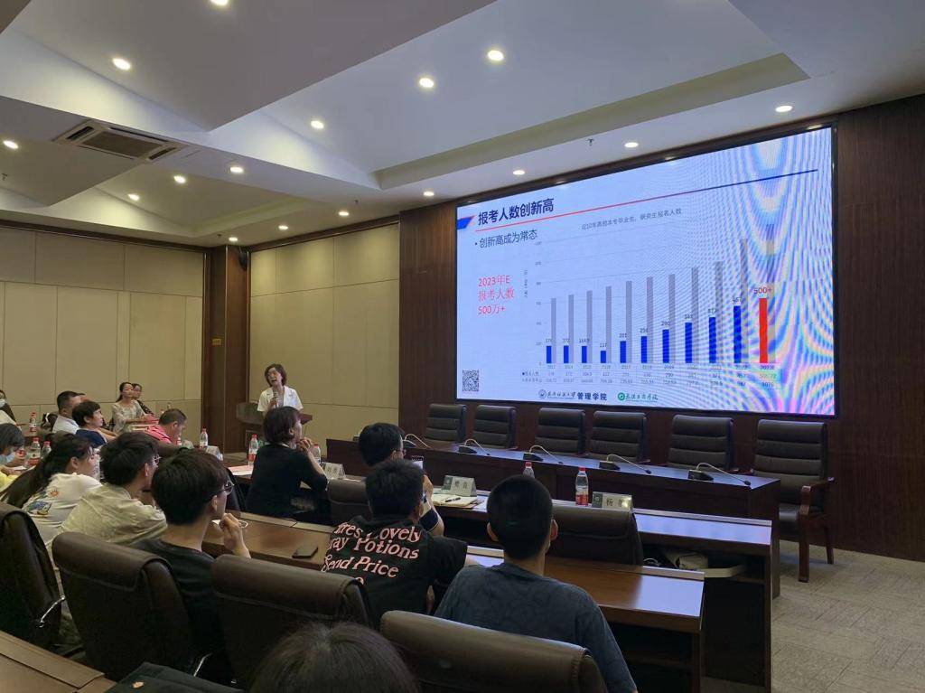 6月16日下午,在校研究生院大力支持下,350vip浦京集团官网研究生招生团队赴武汉工商学院进行专场招生宣讲会顺利举行。校研究生院刘欣副院长、350vip浦京集团官网党委书记滕胜娟、院长吴金红教授、副院长张飞副教授、杨筝博士、郎乔奇博士参加招生宣讲会。