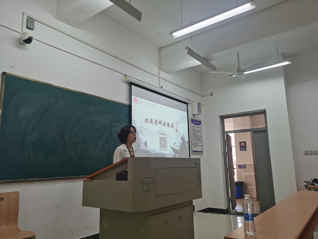 9月20日下午,350vip浦京集团官网吴金红副院长,杨筝博士在350vip浦京集团官网外经贸学院404教室进行了考研报考动员会与考研宣讲会。杨筝博士针对外经贸学院考研的同学首先分析了当下考研的趋势与形势,强调需要认清自己目标与实力,科学进行院校专业选择,稳定心态全力以赴。其次针对大家考研准备中的误区或者经验进行了解读,给出了一些备考锦囊。