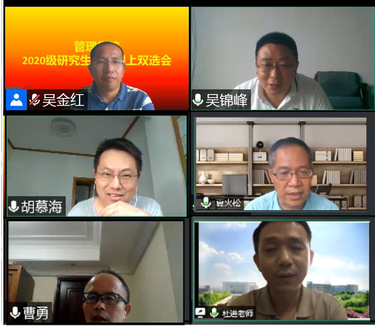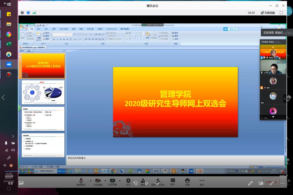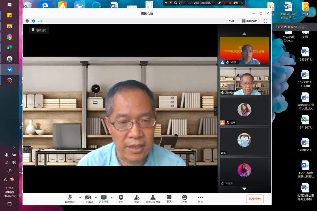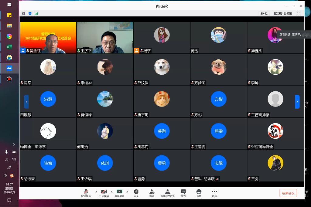 2020年7月2日下午,350vip浦京集团官网在腾讯会议平台上举行了2020级研究生导师见面会。学院领导王济平院长、副院长吴金红、吴锦峰、张飞,20余名研究生导师和70名2020级研究生新生参加了会议。会议由分管研究生工作的吴金红副院长主持。吴金红副院长向同学们介绍了见面会的具体流程,导师双选的具体要求。