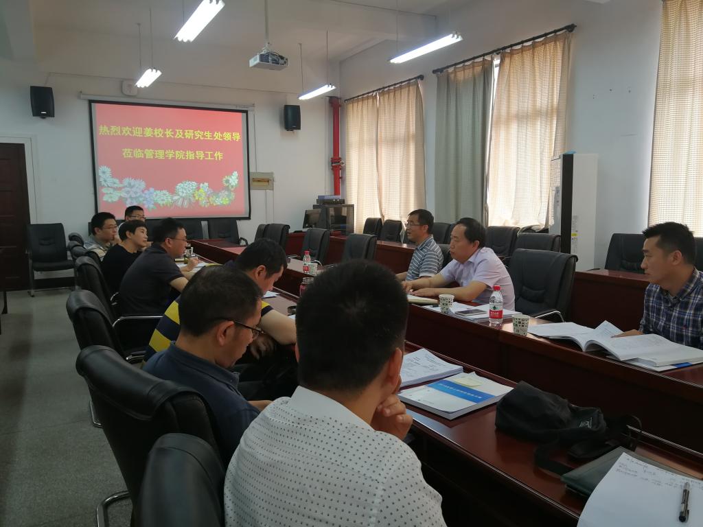 姜明华认真听取了学院的汇报,对合格评估抽评筹备工作给予肯定的同时,也对管理科学与工程、工商管理等学科发展寄予了厚望,并就迎评过程中存在的问题给出了指导意见和建议,对下一步工作提出了明确要求。他强调,学院要高度重视此次评估对学科发展和建设的重要意义,进一步明确发展方向和战略重点,充分发挥学科优势,以评促建,带动学科、学院发展。