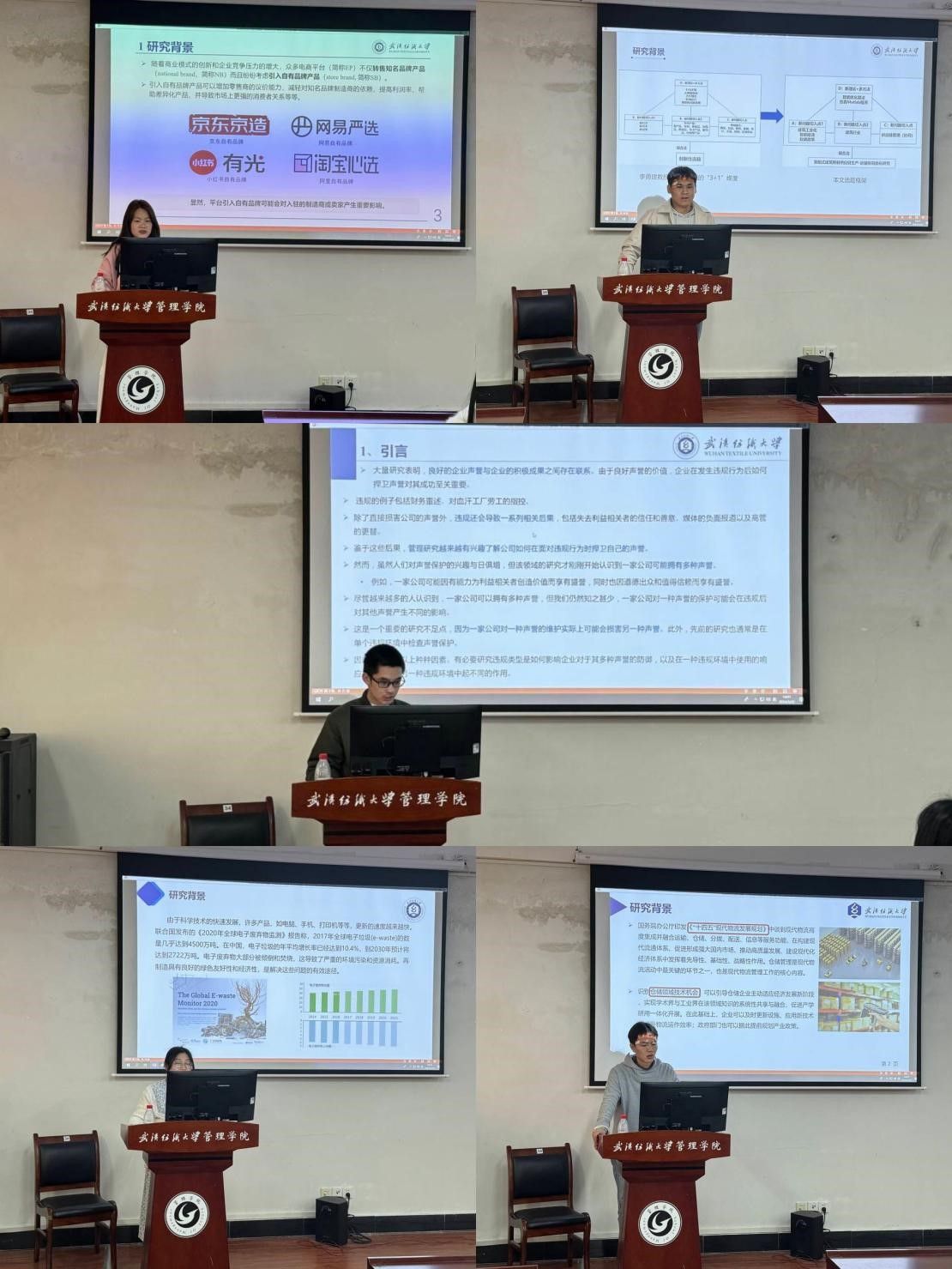 首先分享的是来自22级的潘祺明同学,介绍了论文《不断变化的声誉:一家公司如何在不同的违规行为中捍卫其多重声誉》,本文研究了公司如何在不同的侵权行为中捍卫其能力和品格声誉。使用两个纵向违规样本和新的基于媒体的声誉度量来检验假设。理论和研究结果表明,声誉防御比之前认为的要复杂得多;接下来是来自22级李华同学,对《电商平台引入自有品牌对制造商销售模式的影响》作了汇报,本研究发现:当平台收取的代理费比较低时,制造商总是会选择代售模式。但有趣的是,当平台代理费较高时,制造商也会选择代售模式;随后,来自22级的林奕憬同学对论文《基于主题挖掘与专利价值评估的技术机会识别研究——以我国仓储领域为例》进行了展示,利用近五年的相关专利数据作为源数据,对所提方法进行实证,为创新主体的技术研发提供决策支持。本研究有助于指导仓储企业规避技术风险,把握行业数字化转型新机遇。