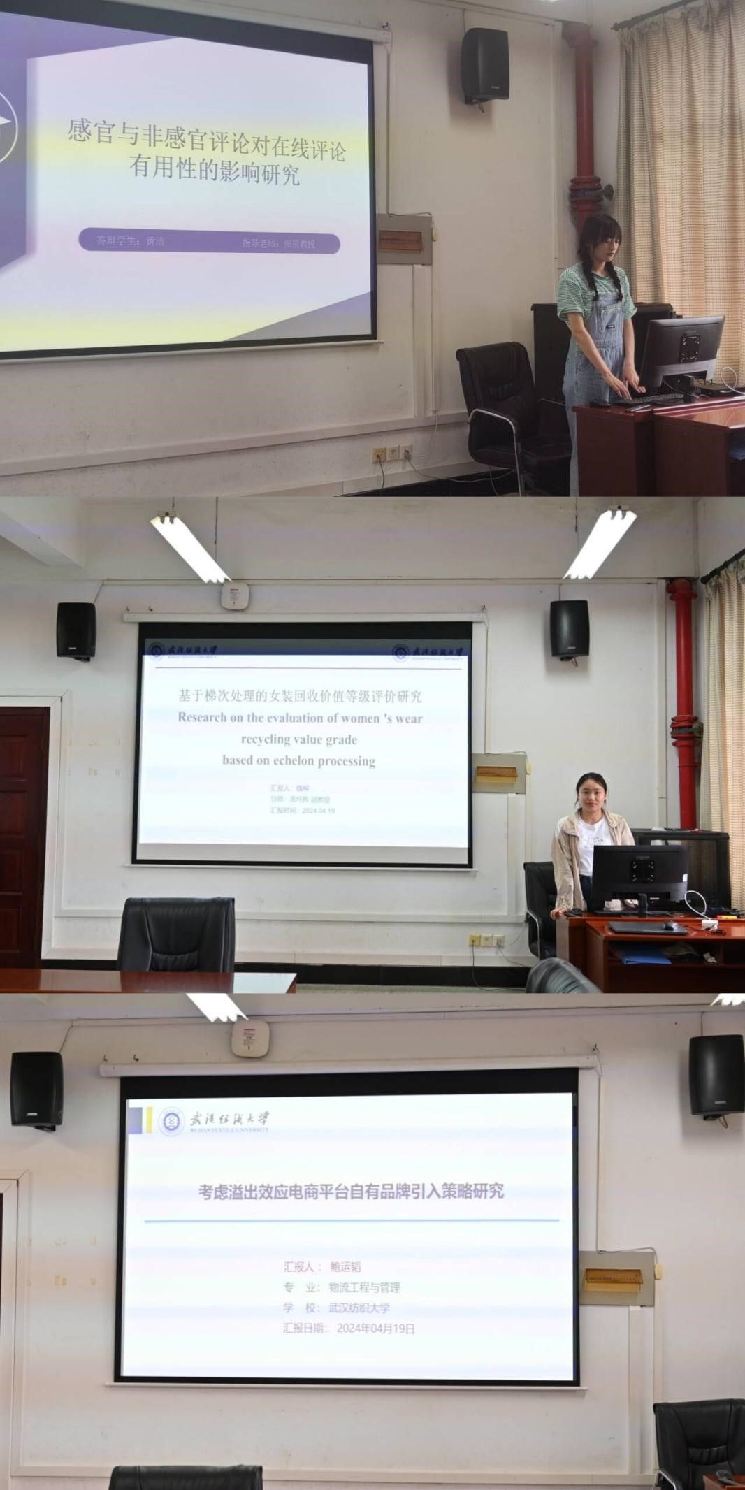 首先分享的是来自22级的鲍运韬同学,介绍了论文《考虑溢出效应的电商平台自有品牌引入策略研究》,本文构建了一个制造商和一个电商平台组成的平台供应链,当二者的合作模式为转售或代销时,在博弈理论框架下分析了溢出效应对平台自有品牌引入策略的影响。接下来是来自22级的魏柳同学,对论文《基于梯次处理的女装回收价值等级评价研究》作了汇报,本文以旧衣回收企业“捂碳星球”为例,选取代表性女装,验证了基于C-OWA算子的模糊综合评价法对于女装价值等级评价的可行性和适用性,为完善女装回收循环体系提供参考。最后是来自21级的黄洁同学对论文《感官评论与非感官评论对在线评论有用性的影响研究》进行了展示,本文不仅丰富了在线评论领域相关的研究文献,还拓宽了与评论类型相关的研究。