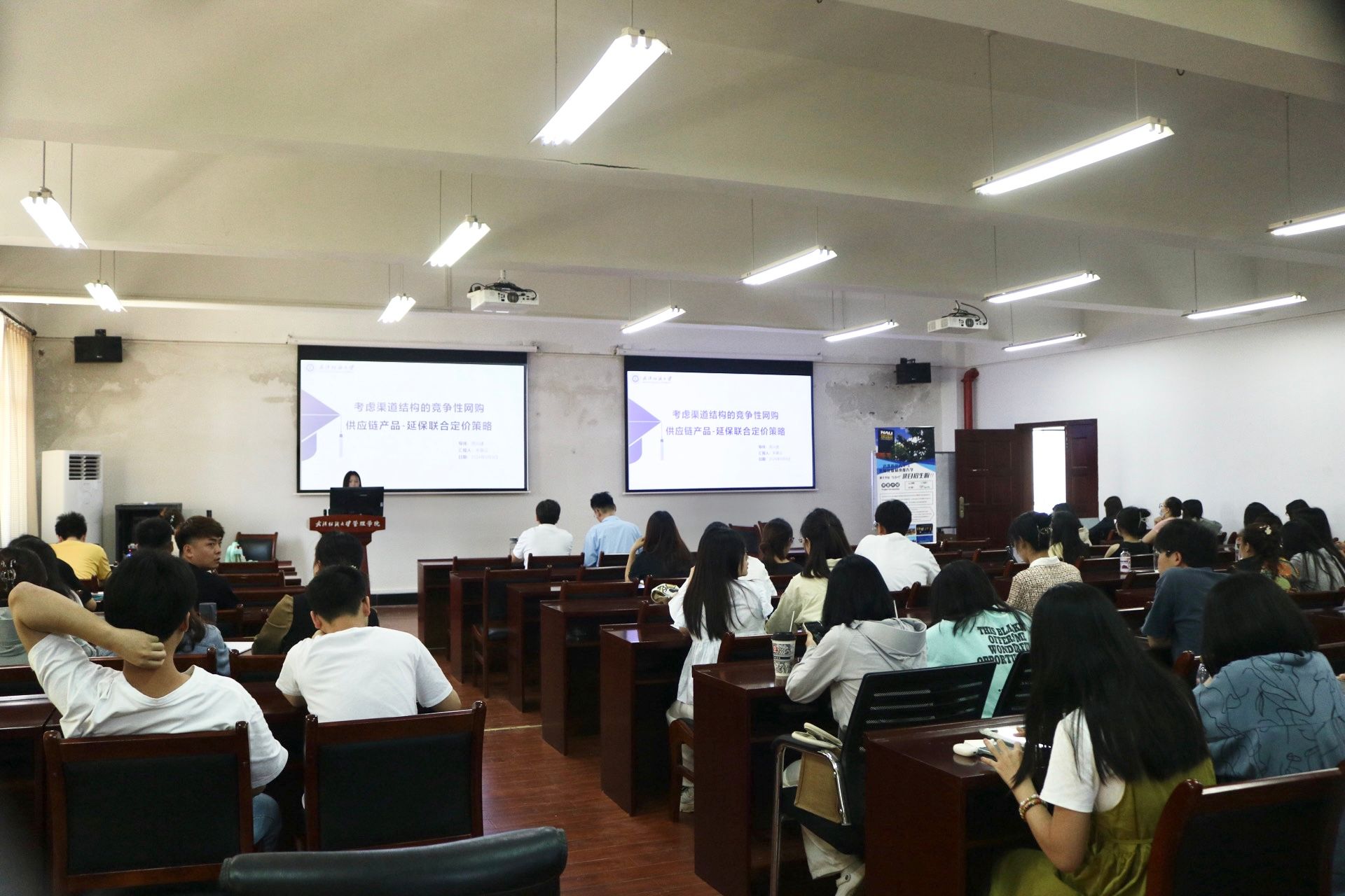 首先分享的是来自22级的朱慕云同学,介绍了论文《考虑渠道结构的竞争性网购供应链产品-延保联合定价策略》,本文考虑网络商店销售由两个竞争性制造商生产的同类但具有差异化的替代性产品,在网络商店提供延保的服务模式下分别针对 RO/MO/PO 三种典型渠道结构构建产品-延保决策模型。其次,来自22级的杨雅娴同学带来了论文《基于KG-LLM增强检索的虚假健康信息识别研究》,构建一种基于大语言模型和知识图谱的健康信息识别模型,旨在提升健康信息识别的准确性和信度。最后一位分享者是22级连千禧同学,对论文《不同绿色供应链金融创新模式下制造商融资策略研究》进行了汇报,结合绿色供应链金融相关理论和实践,在传统供应链融资模式的基础上对绿色供应链金融模式等进行创新设计,并采用Stackelberg博弈模型,探讨不同绿色供应链金融创新模式下对各参与主体的绿色创新投入及供应链融资策略选择。